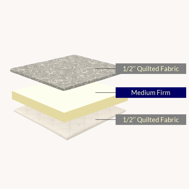 * 0.5” quilted fabric sewn onto both top and bottom surfaces for enhanced comfort